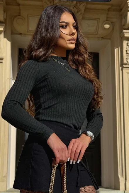 Maleta de Dama, din Pulover, cu Maneca Lunga, Elastica, Vertical Lines, Negru