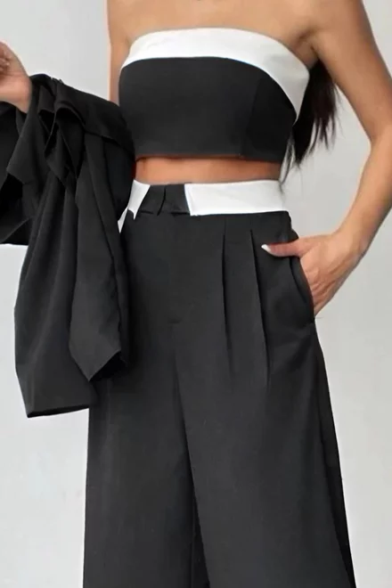 Top Scurt de Dama, din Bistrech, cu Betelie Alba in Contrast, Azorre, Negru