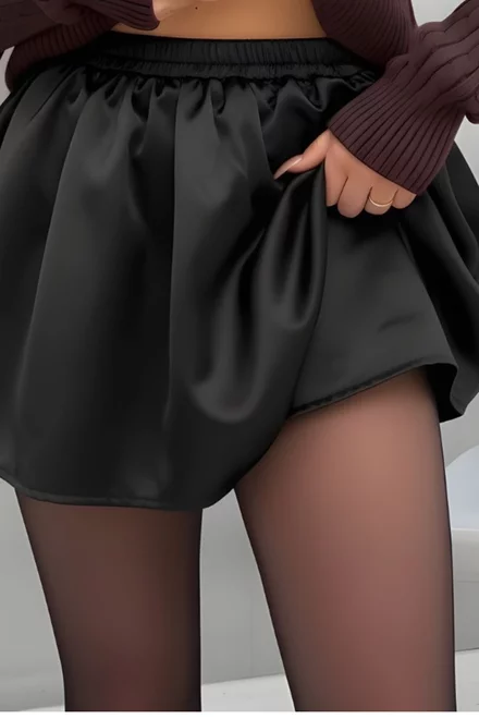 Fusta-Pantalon de Dama, din Satin, cu Elastic in Talie, Nuestre, Neagra