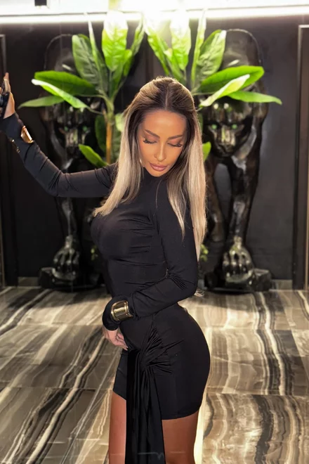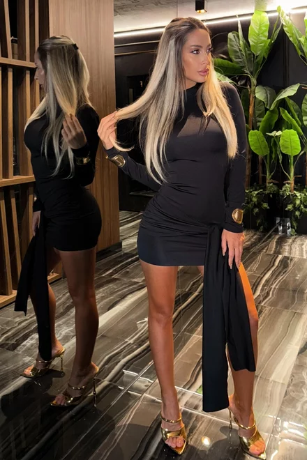 Rochie de Dama, din Lycra Premium, Scurta, cu Maneci Lungi, Candy, Neagra