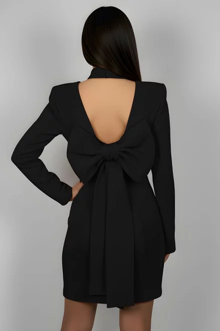 Rochie de Dama Tip Sacou, cu Maneci Lungi Crapate si Accesorizata cu Funda, Andorra, Neagra