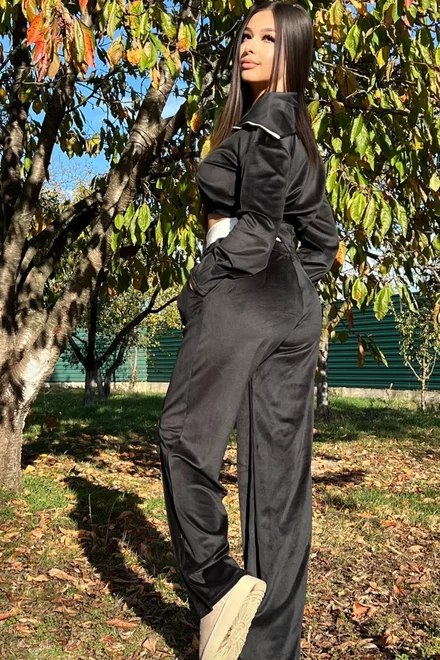 Compleu Lejer de Dama , din Doua Piese, Pantalon cu Betelie Dubla si Bluza cu Inchidere Fermoar ,din Catifea, Riley ,Negru